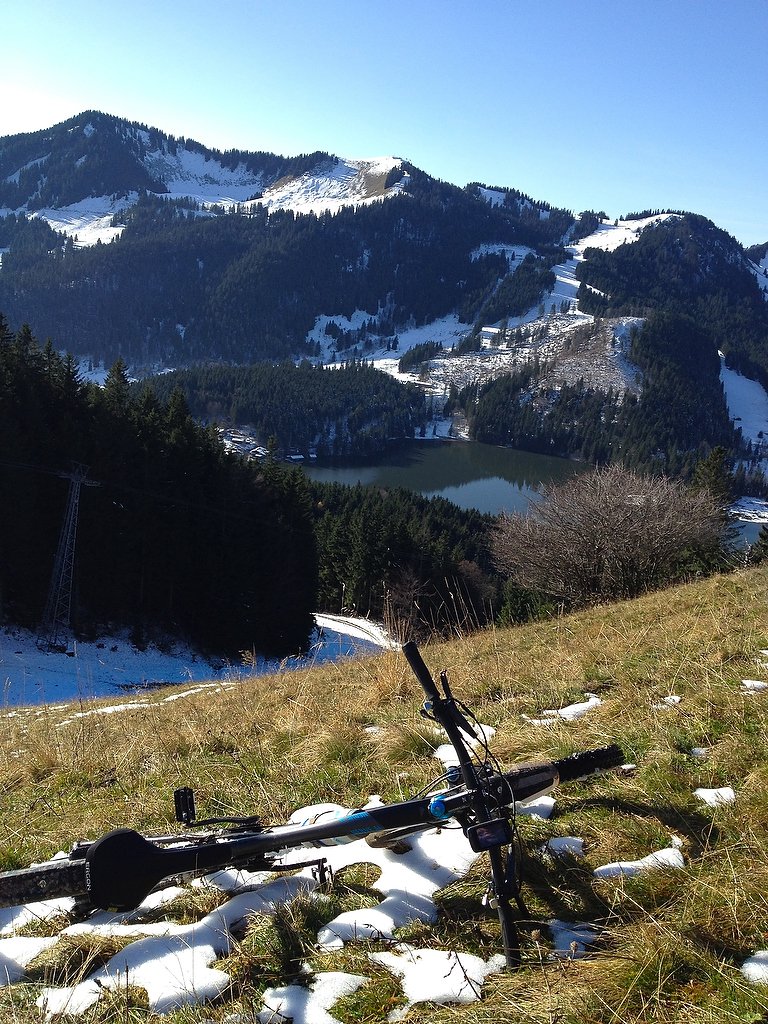 Blick auf Taubensteinbahn und Spitzingsee.