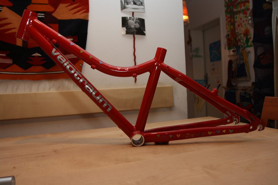 Velotraum K1 Rahmen, schon mit von der Tochter angebrachtem Dekor, aber noch ohne Rahmenschutzfolie.